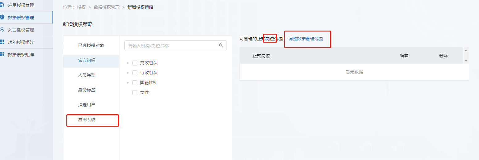 三元组接口规范说明 三元组接口调用授权 组织数据授权 用户数据授权 标签数据授权 岗位数据授权